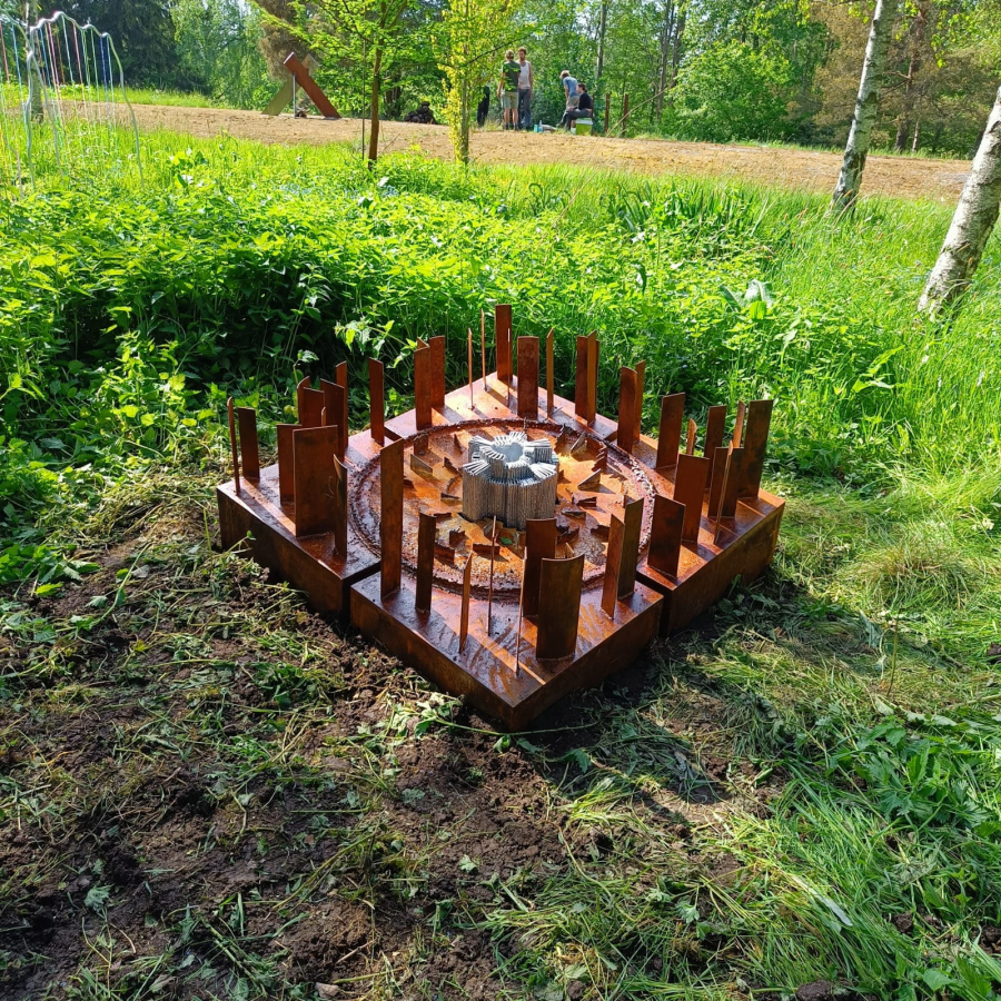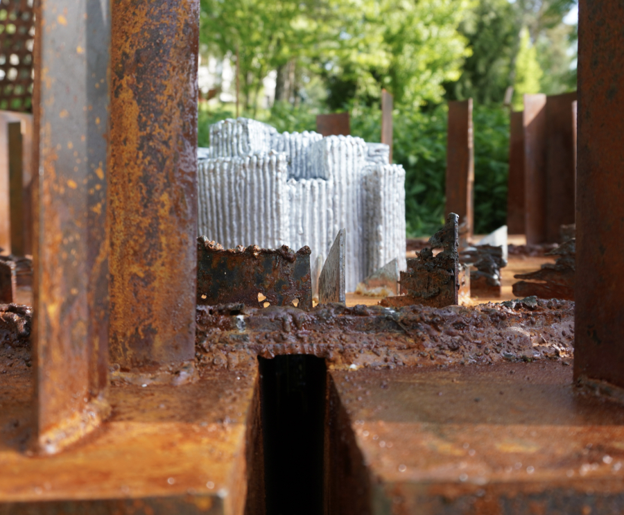 This memorial sign is an interpretation of a symbol for humanity, and what I would like future humans, extra-terrestrials or another intelligent species, as well as modern people to know about the homo sapiens. It explores communication other than written and spoken language, such as: code, star position, and visual interpretation. Furthermore, the piece displays a species of complexity and destructiveness, and how we are intelligent on our own, but our collective knowledge is what makes us brilliant and dangerous.