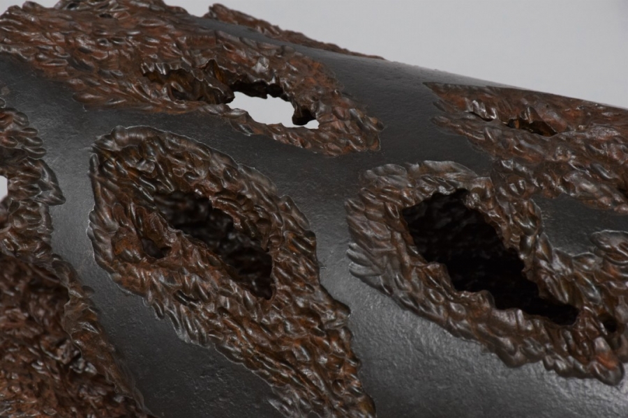 My series focuses on tactility and the experience the viewer gets when they touch my pieces. The physical interaction between my work and the viewer is essential. Having these differently textured sections provide the viewer with multiple ways of exploring my work other than visual. With my work I want to show the possibilities of combining historical techniques and contemporary plasma cutting. A plasma cutter creates an electric arc which melts steel and high-pressure air blasts the molten steel away. I use this method to gouge out material and create texturing to steel.