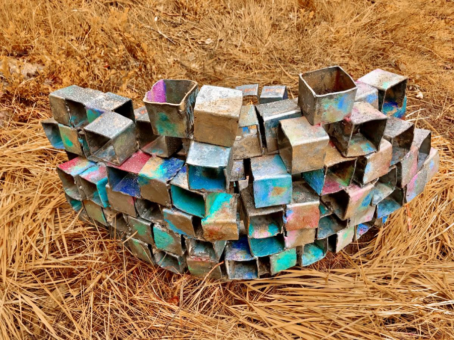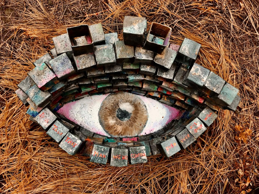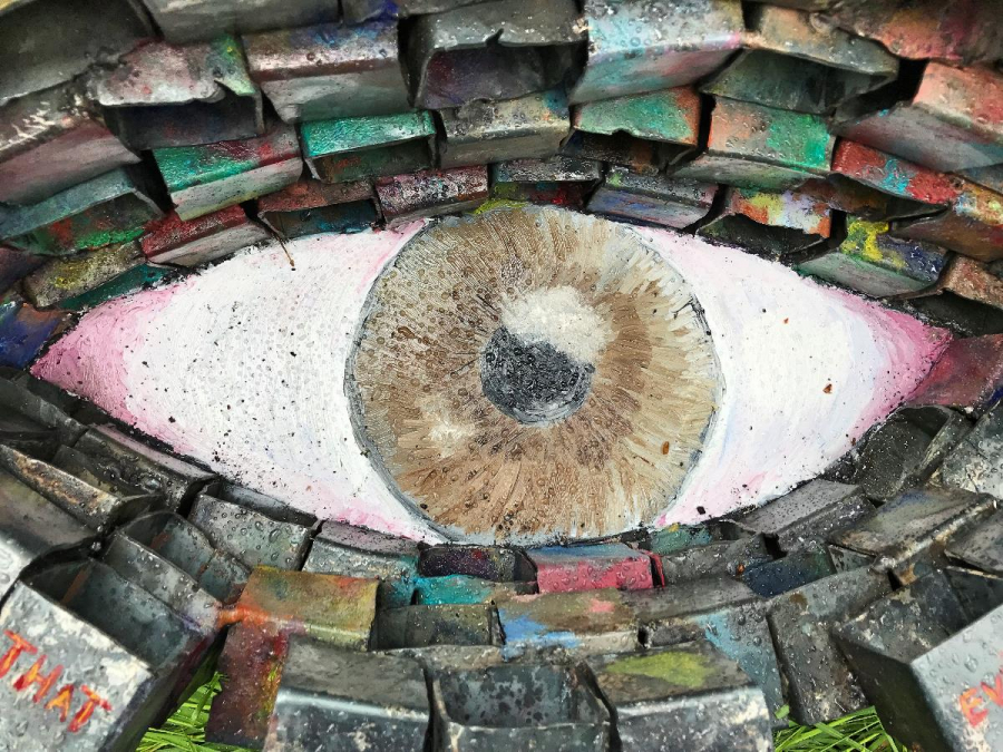 Bizarre, unique and eye grabbing are the words that my memorial sign represents but there is more hidden in the colours, the structure and the open eye. There are cubes surrounding the eye and creating an architectural feeling, that captures the space. The colours on the cubes blend with the surroundings like a chameleon and furthermore the eye becomes a bizarre part of the nature. It is there to show that no-one is truly gone, peeking trough the ground, watching over the people he cares about…