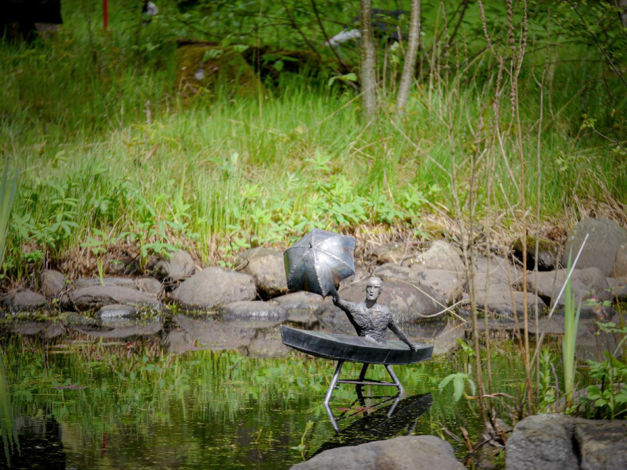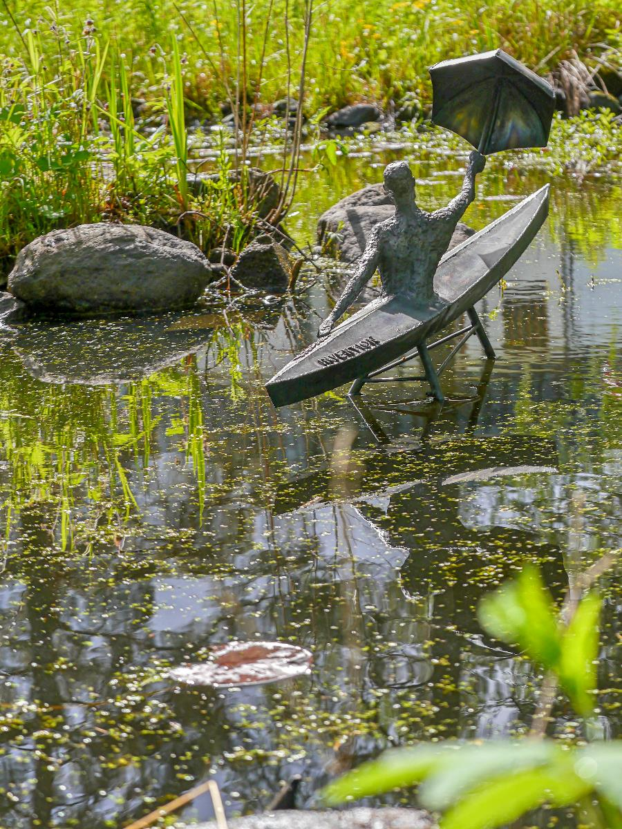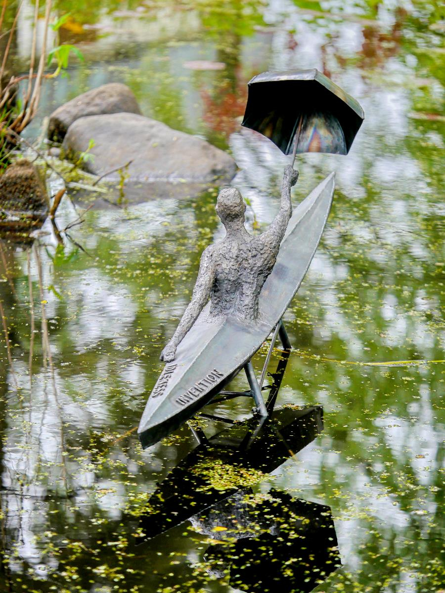 What drives people to be creative? Paradoxical as it may sound, sometimes it is laziness that leads to creativity and inventions. If you're too lazy to paddle, you use an umbrella to sail. I wanted to set a monument to this positive side of a socially negatively valued characteristic.