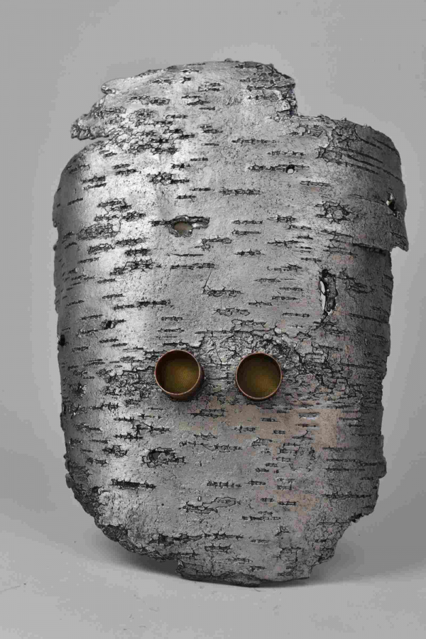 Snoo cast metal silver birch masks were made while in the Swedish countryside. The architecture and village layout were binary to his British urban understanding. The woods enveloped the surroundings keeping a watchful eye on the inhabitants, while the people surrounding also seemed to be keeping an eye on everything as well.