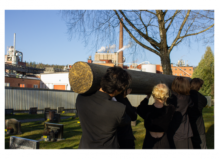 Since a few years back, I live in a small remote village located in the north of Sweden, surrounded by forest. The pulp factory is located a couple of miles away, where many people in the area work, and the landscape is signifi cantly embossed by both the historical and current forest industry. When I refl ect about my work in relation to the place, it feels like it goes hand in hand. The mountains are increasingly characterised by the bald spots that grow wider. The fi shing places on the mire are nowadays wide open fi elds and on the way to the city the piles of lumber rises from the mill. At home, the kitchen becomes warm from the fire in the stove.