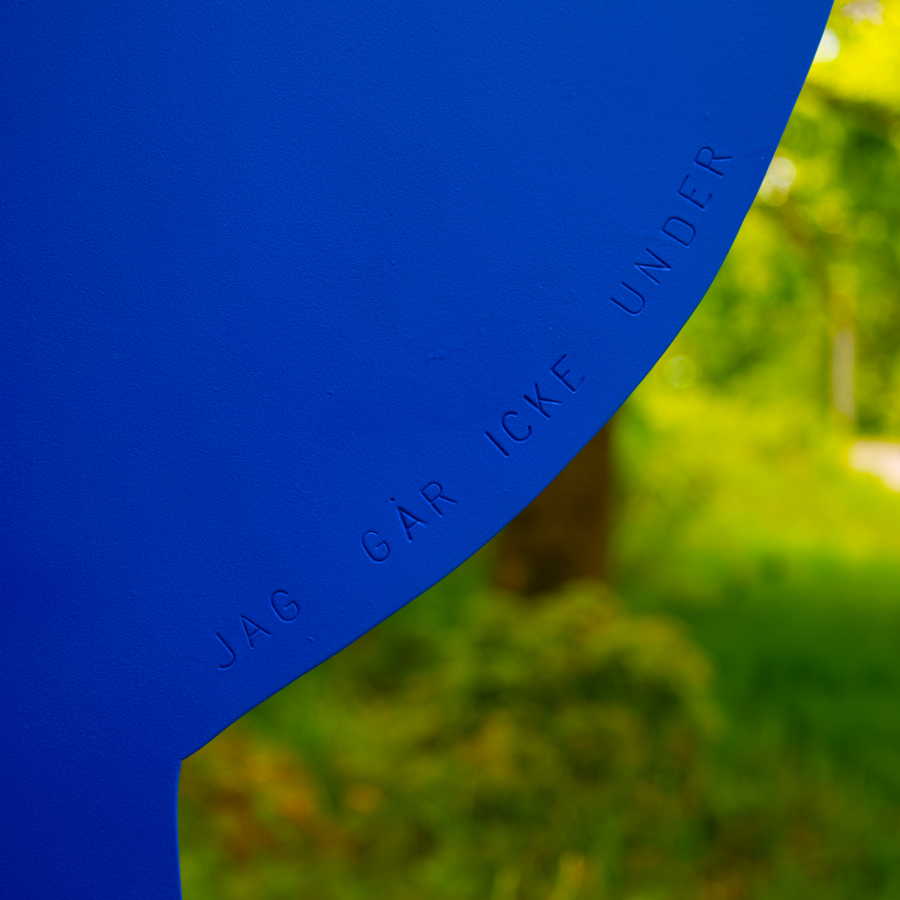 ”Går världen under - jag går icke under” roughly translates to ”if the world ends, I will not end. ” Those words are taken from the poem Ljusfälten (The light beams) by the poet Edith Södergran.