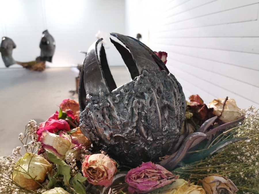 My current exam work in making sculptures that carry a notion of mythological natural mystique and hidden organic powers, and how to perceive the desired expression through various metal working techniques. It also describes my attempts to create art pieces or craft objects with the combination of glass and metal. Furthermore, I make some reflections about technical craft skills and artistic expressions, and their potential conflict.