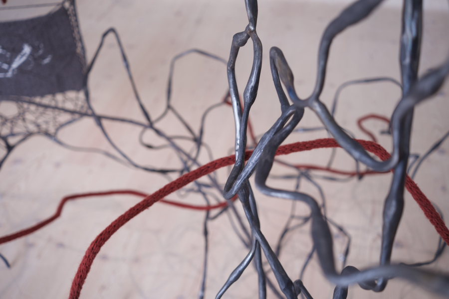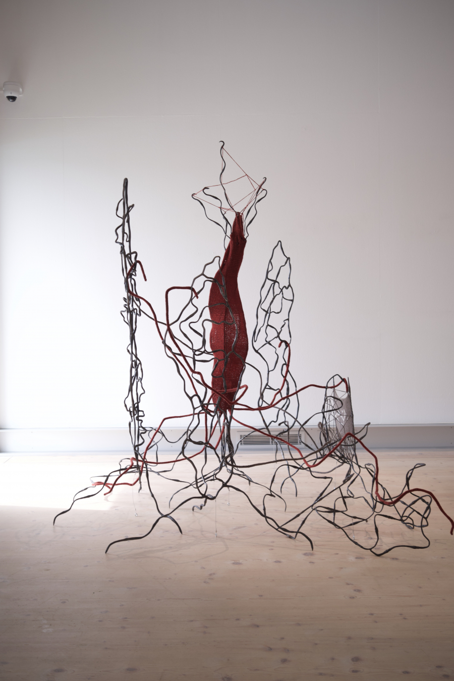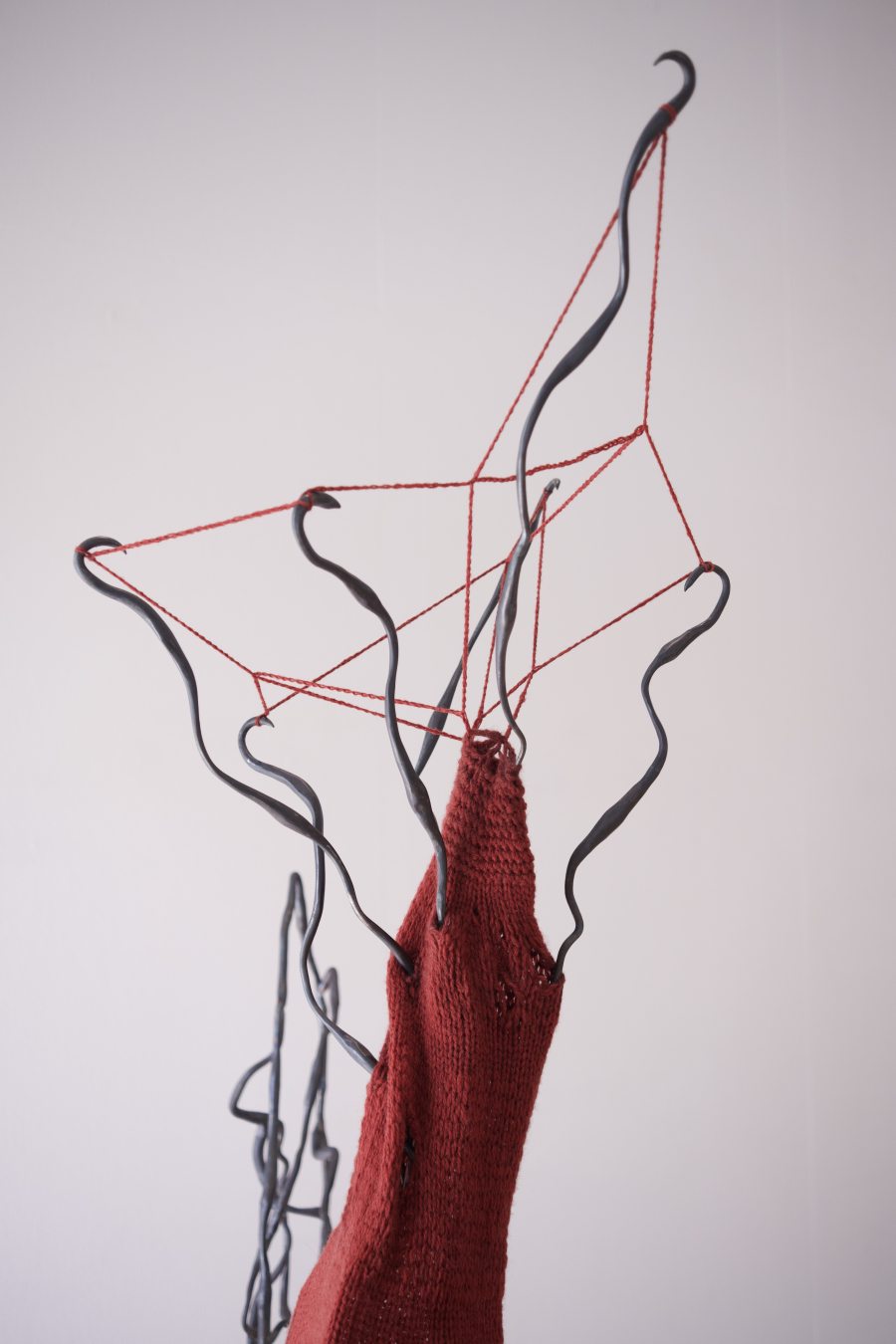 In Speculative Flexures I explore the transformation of metal from a static, industrial material to something active and living. Through an intuitive work process, working with methods as forging, welding, crocheting and knitting I have created sculptures which are dynamic, organic and entangled with each other. The project comes from a curiosity for how materials and the artist (me) interact and the relation that have evolved through the past years.