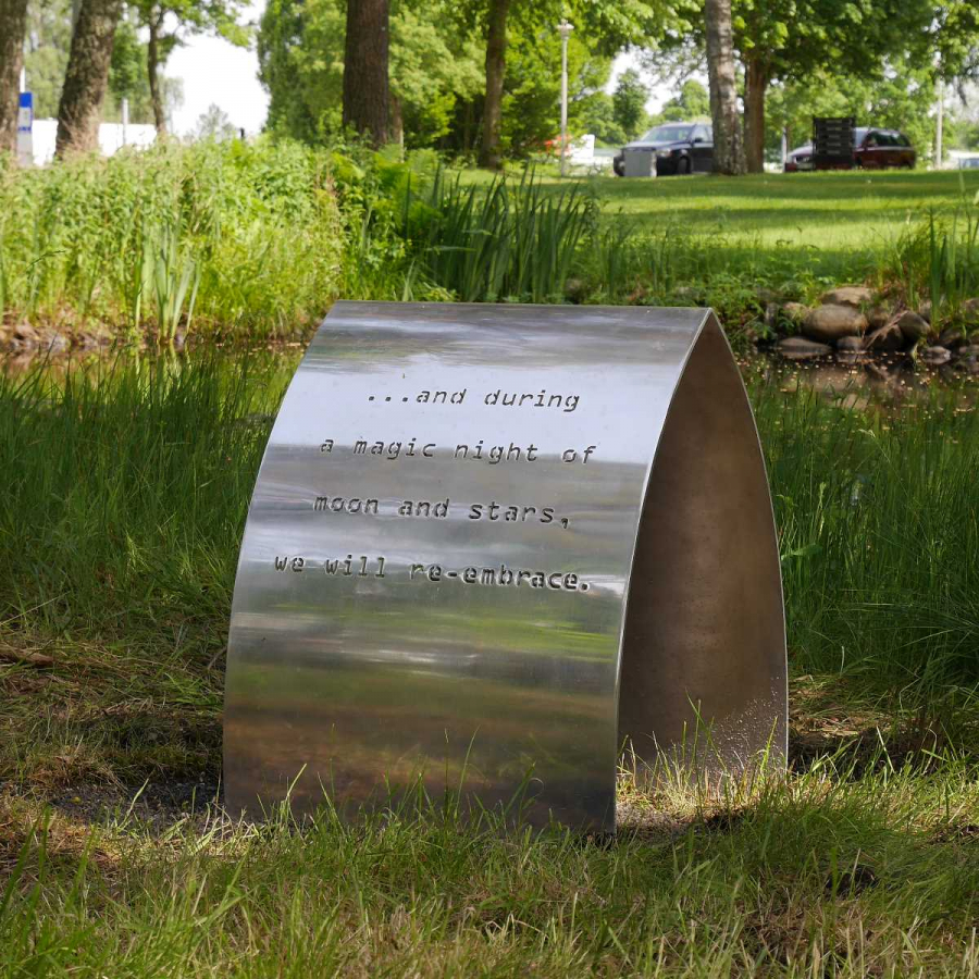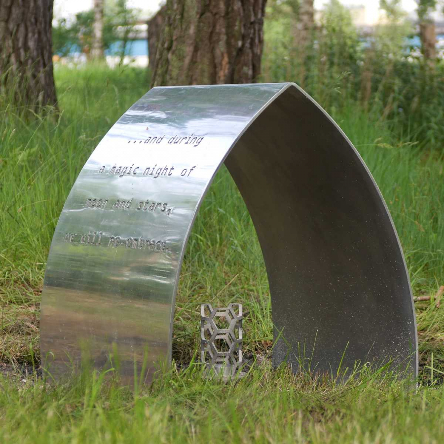 The luminosity, purity and elegant simplicity of the shapes that distinguish this tombstone refer directly to an idea of death as a natural and ineluctable transformation of state, and more precisely from an awareness of being, to which we are linked through our physicality until the attainment of a totally impalpable and spiritual state.