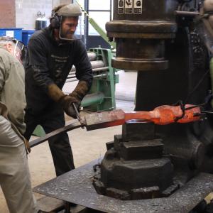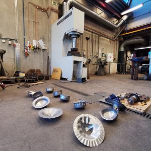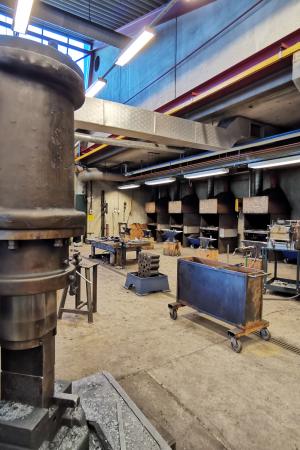 3 power hammers for hot metal forging and a 166 US-Ton hydraulic C-frame press for all kind of metal forming and shaping.